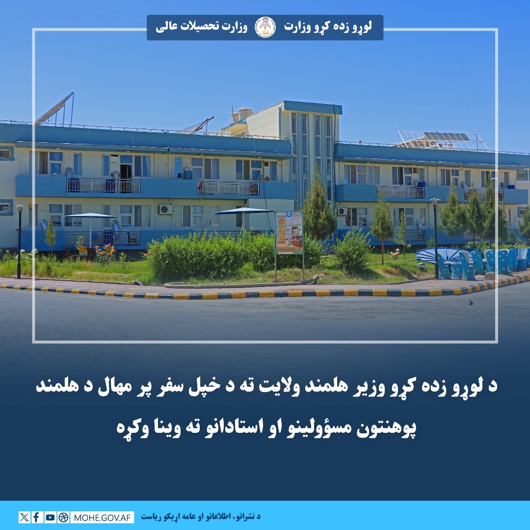 یادآوری میشود که رئیس دانشگاه هلمند، شیخالحدیث مفتی محمد شریفالله ابو احمد، از سفر وزیر تحصیلات عالی به این دانشگاه ابراز خوشی کرد و برای او خوشآمدید گفت.